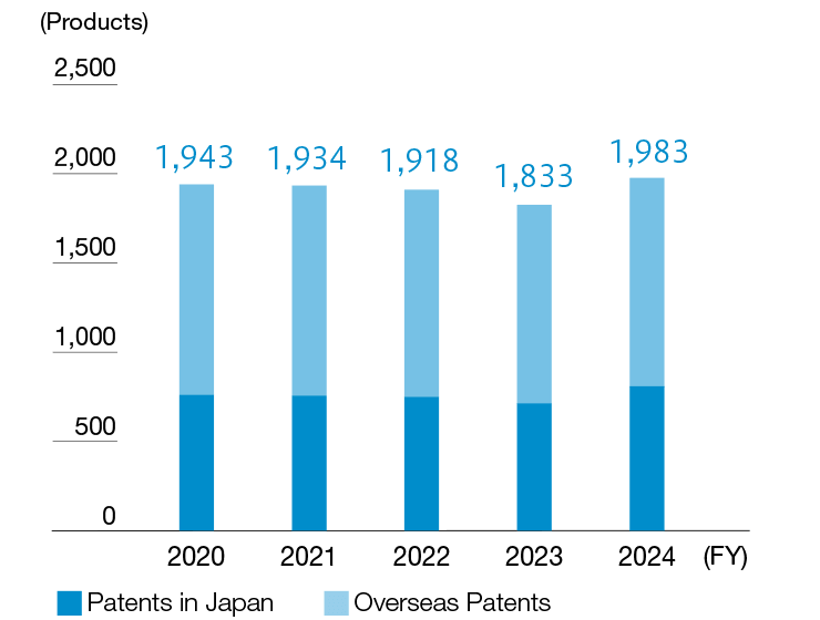 We are striving to strengthen our business competitiveness by promoting the strategic use of industrial property rights in cooperation between the Intellectual Property and Business Divisions. This includes strengthening activities aimed at avoiding the risk of infringing on other parties’ rights by our company and proactively responding to infringements by other parties.