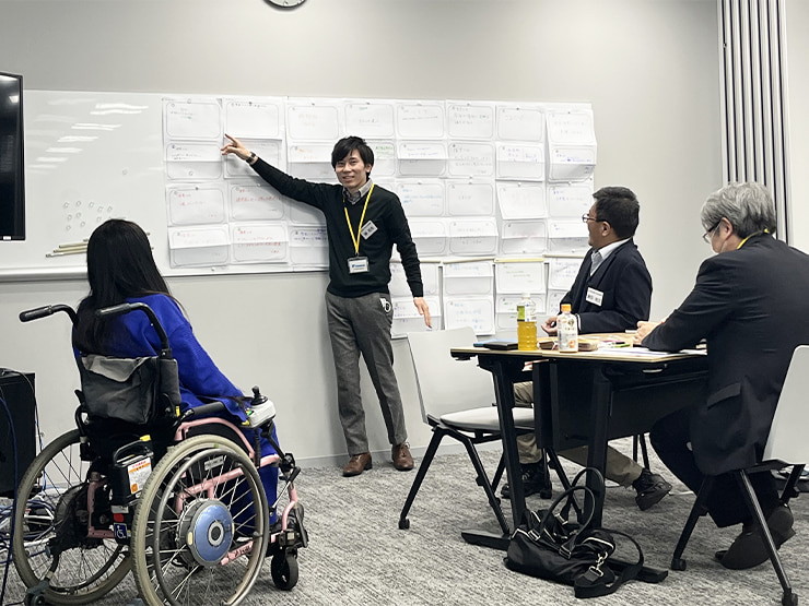 At Tsubakimoto Chain, a lecturer was invited from the NPO Disability Equality Training Forum to host disability equality training (DET). For this training, people with disabilities acted as facilitators, and along with the other participants considered the creation of inclusive organizations from which people with disabilities are not excluded.